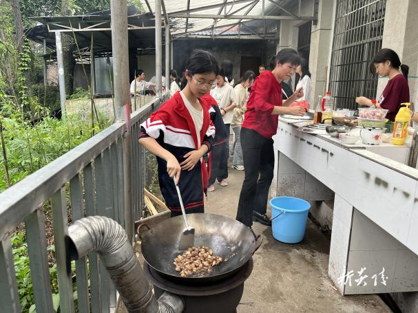 实践过程中,学生们纷纷走进临时大厨房,从选择菜品开始,清洗处理食材,烹饪、调味,摆盘,老师们现场指导,耐心传授烹饪方法,经过大家的共同努力,一道道色、香、味俱全的菜肴呈现在餐桌上,品尝着自己亲手劳动的成果。