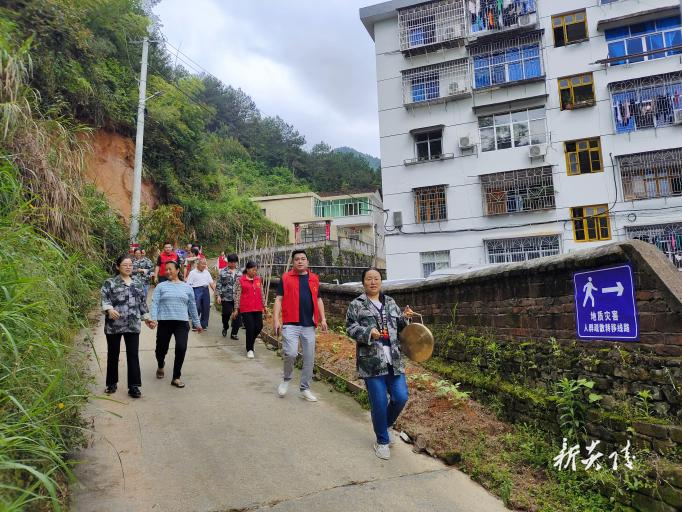 本次演练主要模拟地质灾害预警及应急处置全过程,按事故发生、集合整队、入户劝导、安置转移四个过程进行,现场还设置了地质灾害人群疏散转移线路、安全撤离路线、安全转移集合点等标识。工作人员通过敲锣、吹哨呼喊等形式发送疏散信号,引导居民按预定疏散路线向安全地点进行撤离,整个演练过程有条不紊,演练取得圆满成功。