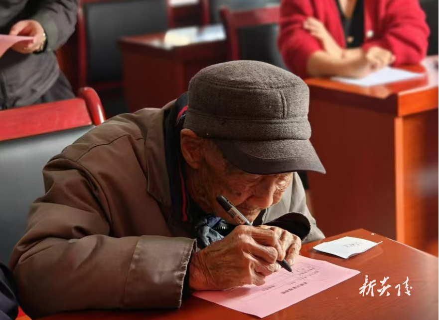 近日,在炎陵县十都镇新龙村党总支第二支部的党员大会上,一幕感人的场景让人肃然起敬:一位98岁高龄的老人,郑达文,正微伏在会议室内肃静的桌前,手中紧握着笔,慎重地在发展对象推荐票上缓缓写下一名年轻发展对象的姓名。随后,他以一名正式党员的身份,投出了自己神圣的一票。
