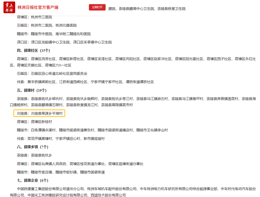 近日,株洲市2024年度“健康细胞”建设合格单位名单出炉。其中,炎陵县策源乡平湖村荣获市级“健康村”。