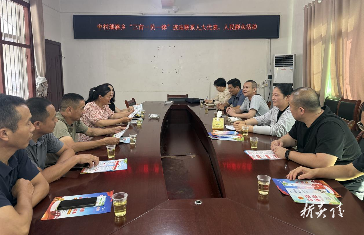 6月17日,炎陵县中村瑶族乡人大开展“三官一员一律”(法官、检察官、警官、人民调解员、律师)进联络站联系人大代表和人民群众活动。活动重点针对前期收集和现场反映集中的家庭婚姻、经济借款、工程项目纠纷等热点法律问题展开。