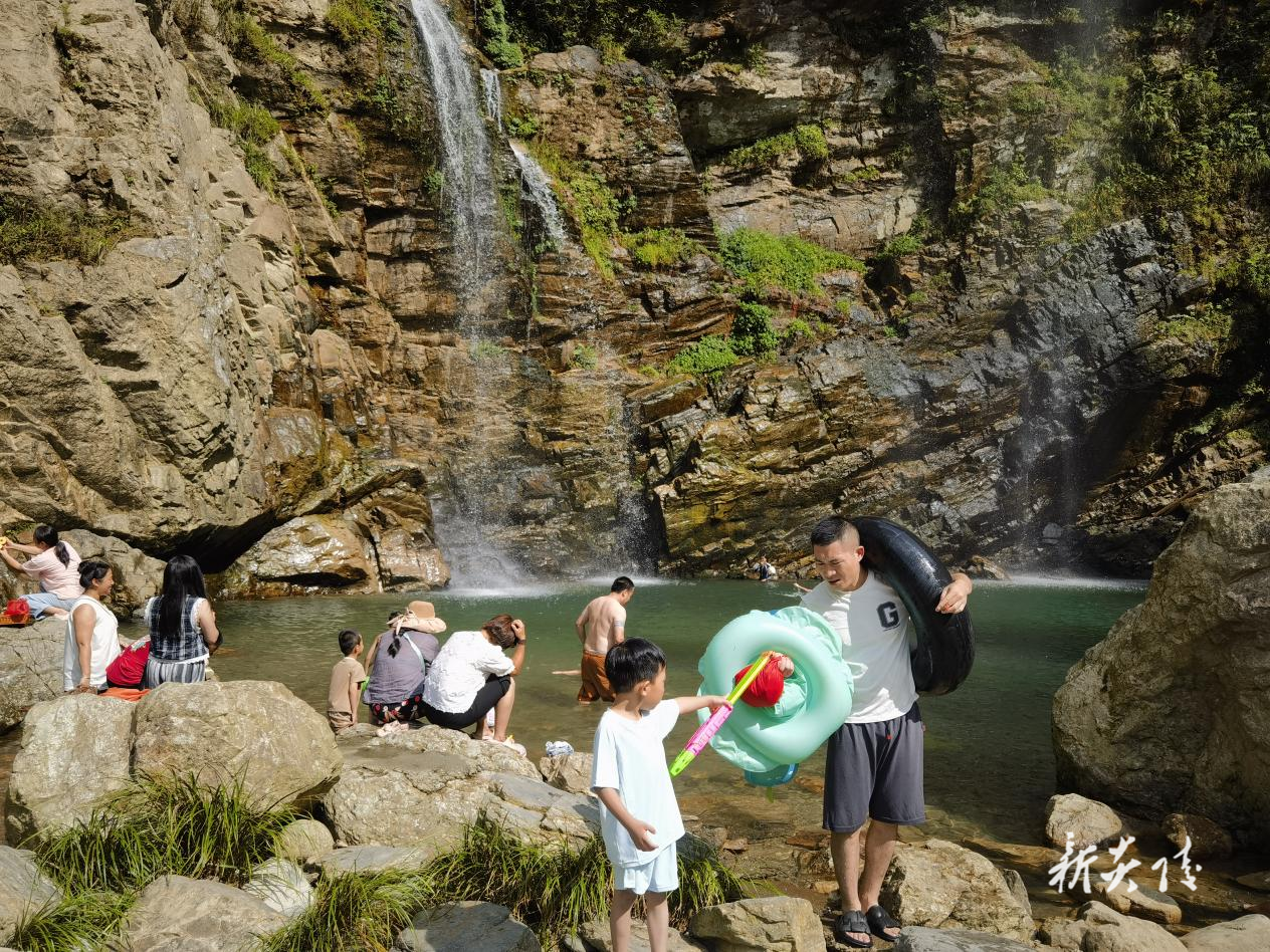 随着气温不断攀升,炎陵县中村瑶族乡龙渣村的“白米下锅”瀑布成为了游客们避暑玩水的宝藏之地,吸引了大量游客前来享受清凉。