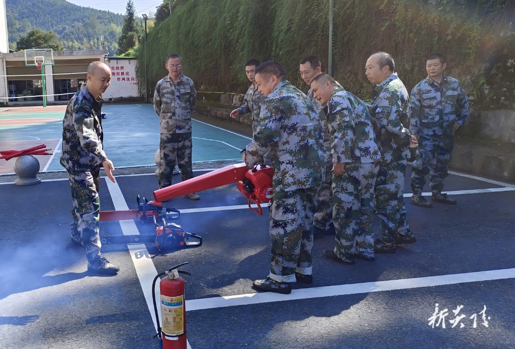 演练当天,全体干部职工系统学习了干粉灭火器、风力灭火机、油锯、割草机等常用灭火设备的使用方法与操作要领。随后,演练队伍转战三口龙村预设的第二现场,实地模拟了森林火情热点核查与处置的“131”响应机制。整个演练过程紧张有序,结束后由消防车对模拟火场进行了全面清理,彻底排除复燃可能。