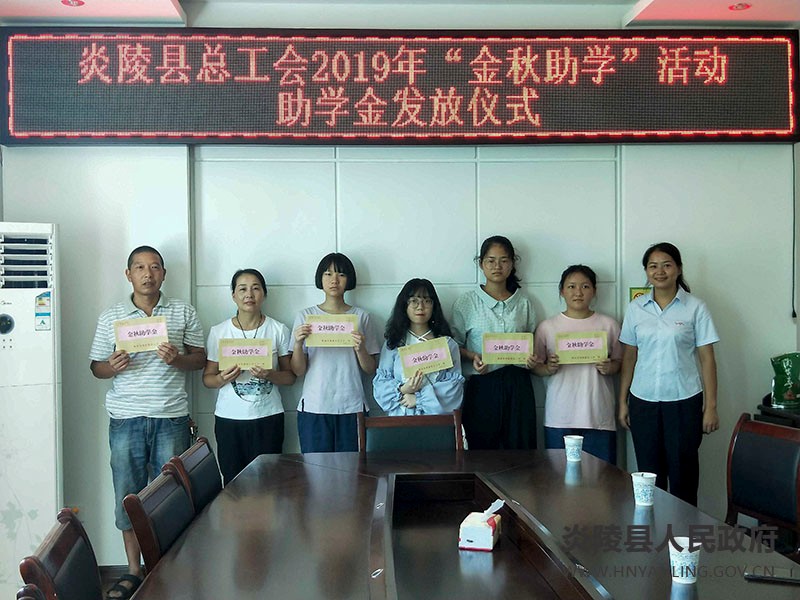 9月5日,县总工会举行了2019年"金秋助学"活动助学金发放仪式。为6名困难职工、农民工家庭的学子们发放了1.8万元的金秋助学金。