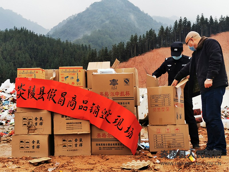 2020年12月16日上午10时,市场监督管理局联合公安局在县回垅仙垃圾处理场对2020年度查获的假冒商品进行集中销毁。