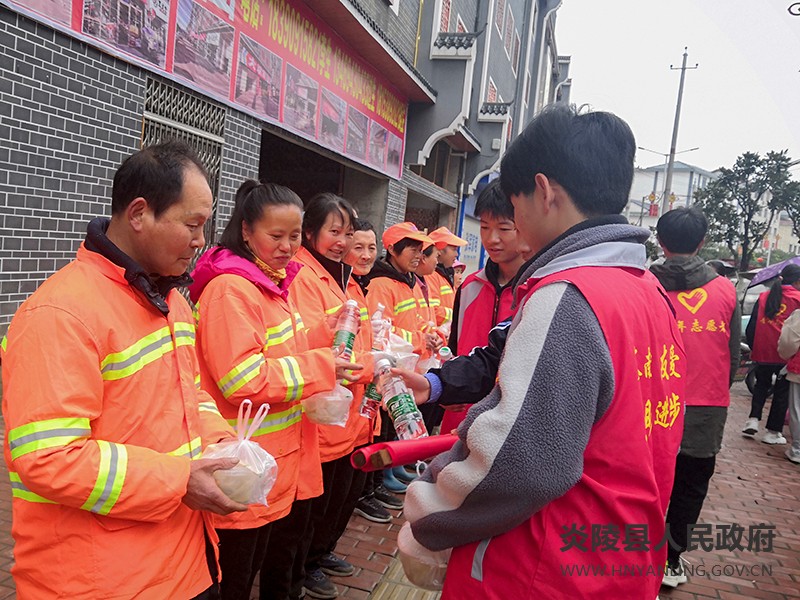 炎陵职校开展“雷锋家乡学雷锋•担当奉献我践行”为环卫工人送爱心早餐活动