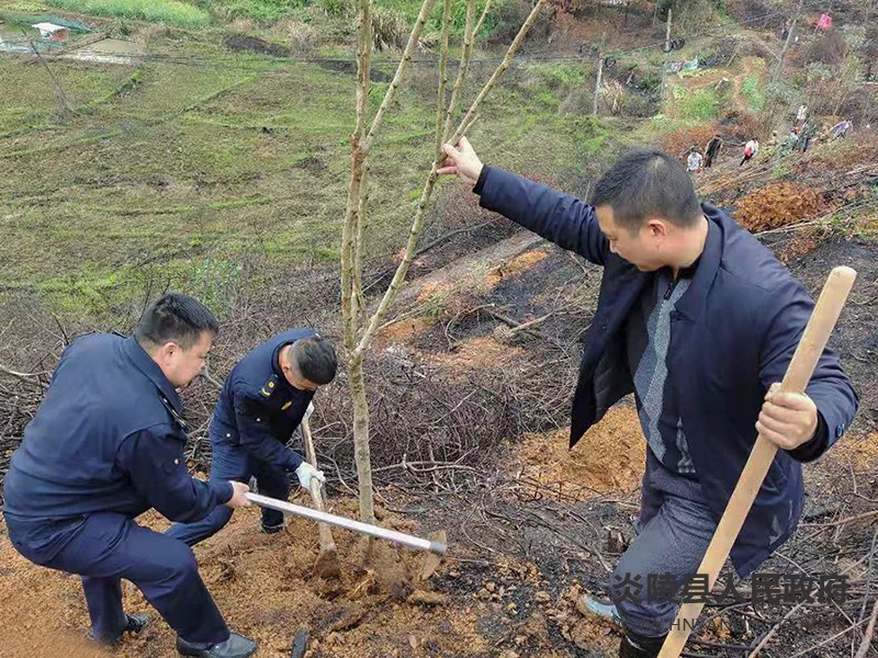植树活动现场,志愿者们按照划定区域,精心栽植每一颗幼树,挖坑、扶苗、培土、踩实,每一道工序做得认真细致、配合默契,个个忙得不亦乐乎。经过一个上午的劳动,一株株新绿昂然挺立,为初春的炎陵大地平添了丝丝绿意。