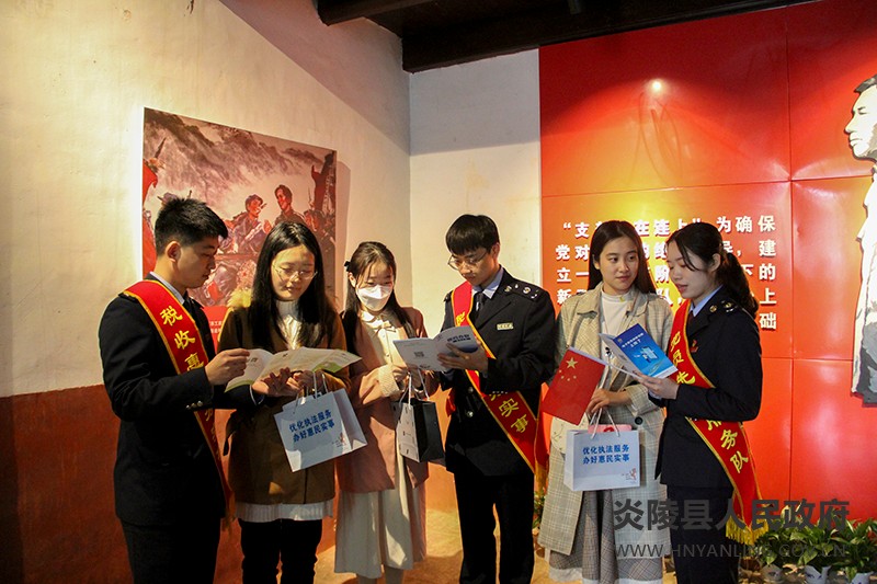炎陵县水口镇叶家祠,是中国共产党历史上有名的“水口连队建党”旧址,是真正把“支部建在连上”的思想付诸实践的开端。炎陵县税务局组织青年党员、团员干部组建税收宣传服务小分队,在邀请纳税人代表一同瞻仰革命圣地、回顾红色历史的同时,将税费优惠政策大礼包也送到纳税人和来往群众手中,耐心地为纳税人和群众解答他们最为关心的社会保险费、个人所得税等税费政策,“手把手”辅导他们使用湘税社保APP、个人所得税APP、电子税务局移动端等线上办税缴费软件,向广大纳税人和群众传递了税务干部践行初心使命、真诚为民服务的决心。