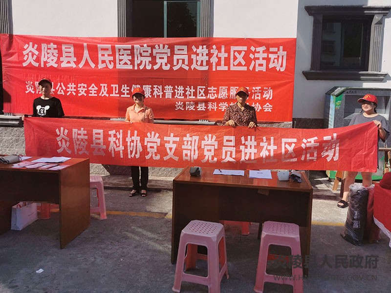 7月22日上午,炎陵县科协会联合县人民医院在炎陵县和顺家园小区开展在职党员进社区—公共安全及卫生健康科普志愿服务活动,县科协全体党员干部职工、县人民医院党员、专家等30余人参加活动。