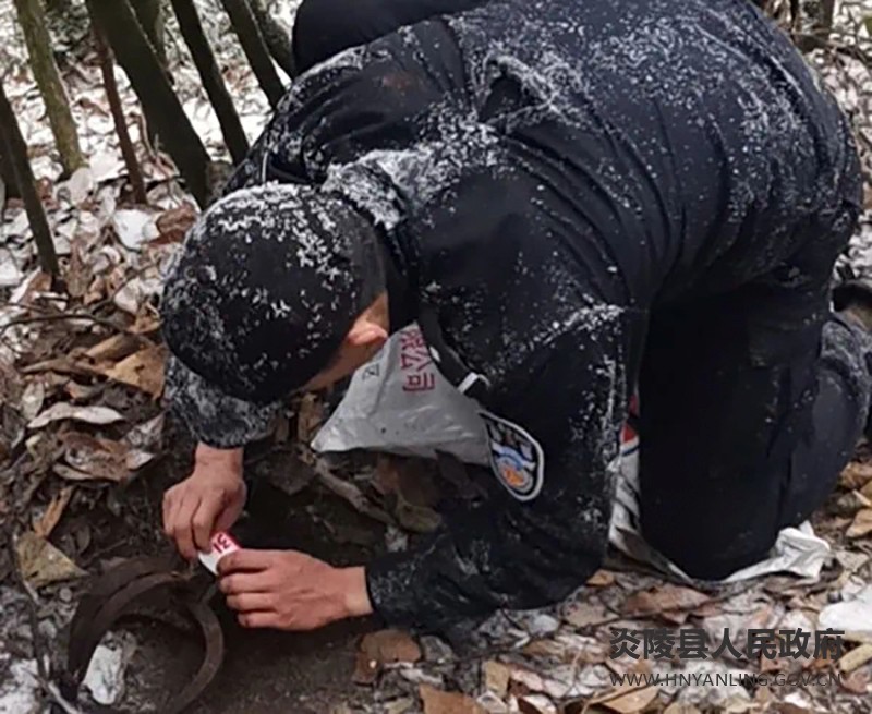 2020年12月7日,炎陵县公安局森林公安接到报警称:炎陵县桃源洞自然保护区内有人打猎。接警后,桃源洞派出所民警立即赶往事发现场,当场抓获涉嫌非法狩猎的犯罪嫌疑人黄某某,并收缴野猪1头。经过民警的缜密侦查发现犯罪嫌疑人在炎陵和江西境内多个山场还安装有59套狩猎装置,为防止狩猎装置对公共安全造成威胁,尽快将危险排除。今年1月份,森林公安对犯罪嫌疑人呈请出所,并组织10余名警力开展对狩猎装置的解除工作。民警们在地形险、海拔高、温度低的极端环境下,历经四天,安全解除狩猎装置59套,消除了安全隐患。