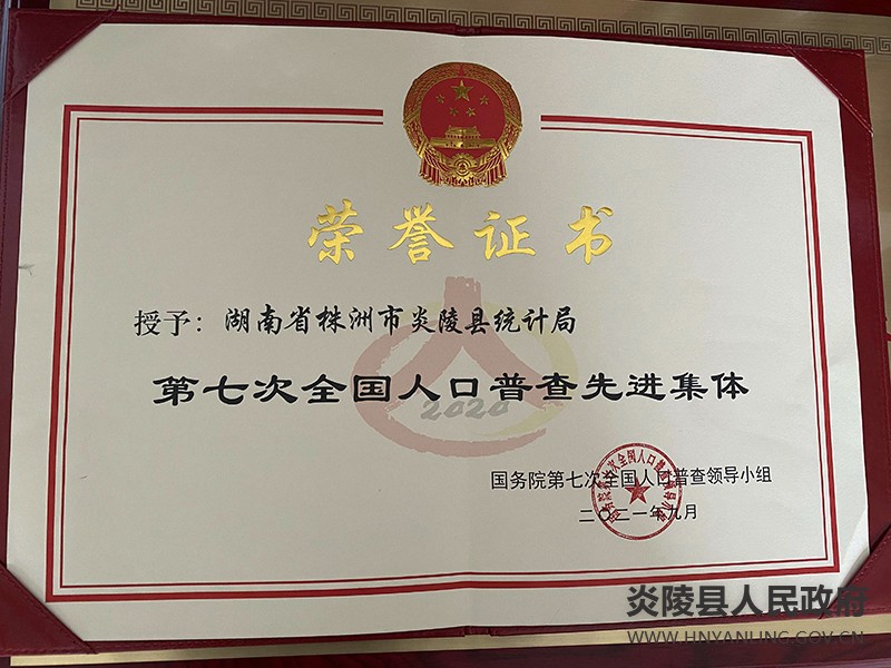 近日,国务院第七次全国人口普查领导小组发文表彰在第七次全国人口普查中做出突出贡献的先进集体和先进个人,炎陵县统计局荣获“全国第七次全国人口普查先进集体”荣誉称号。湖南省仅有19个单位获奖,株洲市统计局、炎陵县统计局名列其中。