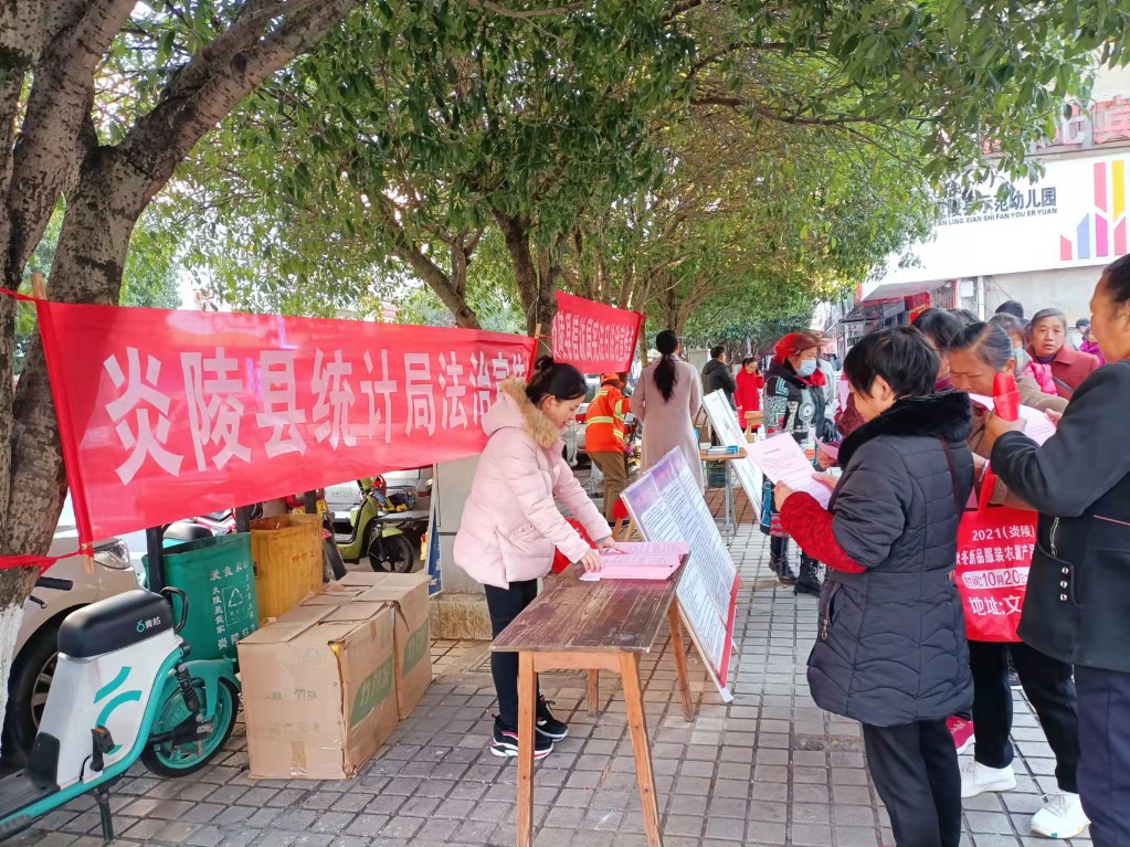 12月6日上午,炎陵县统计局组织普法宣传小队,在炎陵中路步行街设立专门普法宣传点开展统计法治宣传活动。