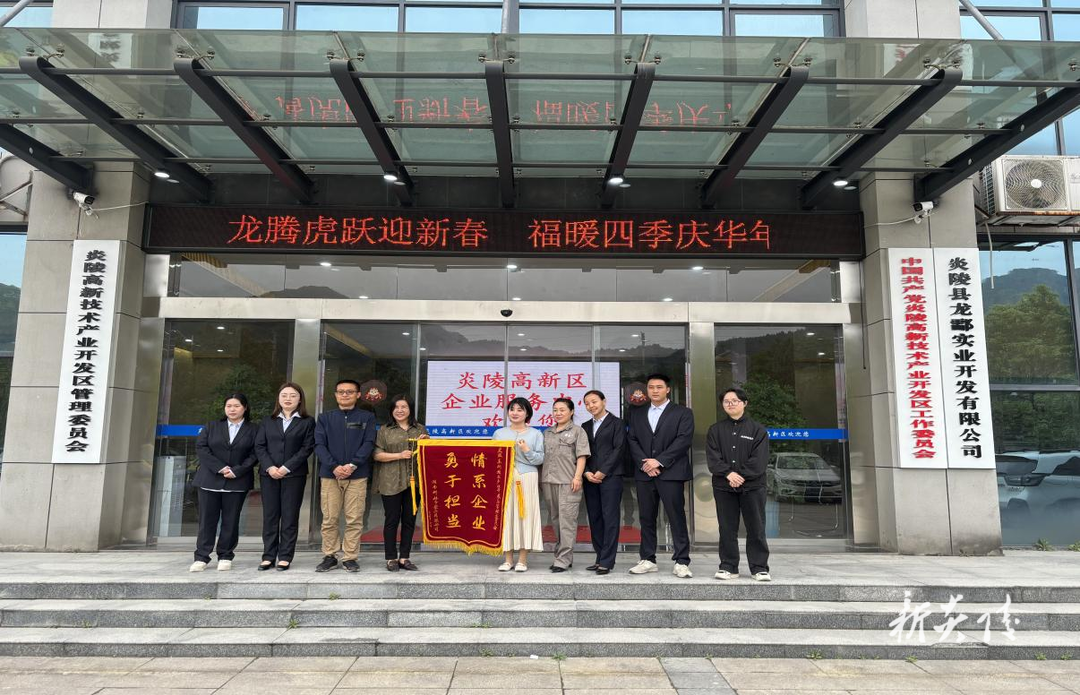 4月1日,湖南娜妹子食品有限公司负责人刘女士来到炎陵高新区企业服务中心大厅,向工作人员赠予一面写有“勇于担当 情系企业”的锦旗,对工作人员在业务办理中的事前指导、事中服务、事后回访,以及热情细心的服务表示感谢。
