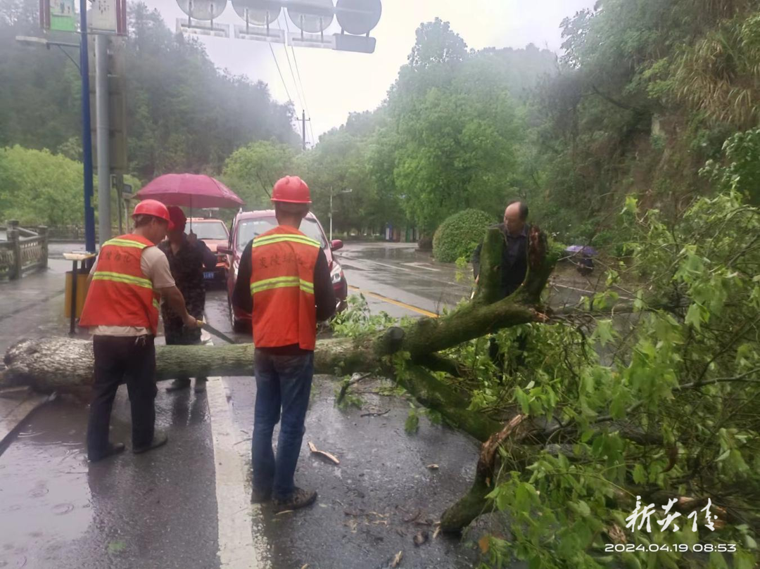 4月19日,因强对流天气导致大风大雨,炎陵县城管局执法队员巡查至接龙桥路段、双江口路段时,发现有行道树倒伏,严重阻碍了车辆和行人通行,存在一定的安全隐患,接到消息后,县城管局园林应急抢险队伍马上就办,迅速出击。
