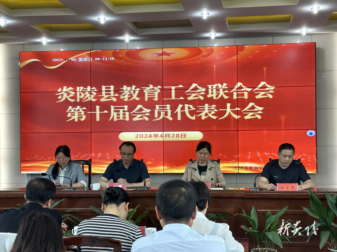 4月28日,炎陵县教育工会联合会召开第十届会员代表大会。会议分阶段表彰了2023年度工会工作先进单位、先进个人和最美职工,并按照程序完成了换届选举。会议由教育局党委书记古育平主持,机关及基层工会代表64人参加会议。