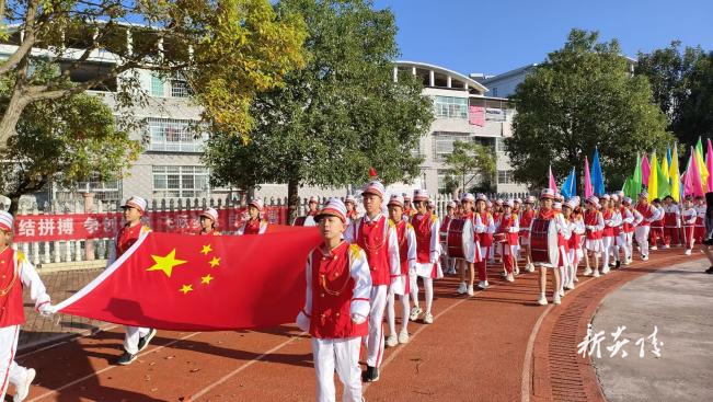 近日,炎陵县明德小学于举行了秋季运动会开幕式活动。伴随着激昂的进行曲,国旗校旗方阵、鼓号队方阵、彩旗方阵、鲜花方阵、裁判员方阵和班级方阵精神饱满、阳光自信,昂首阔步走过主席台,将开幕式气氛瞬间点燃。