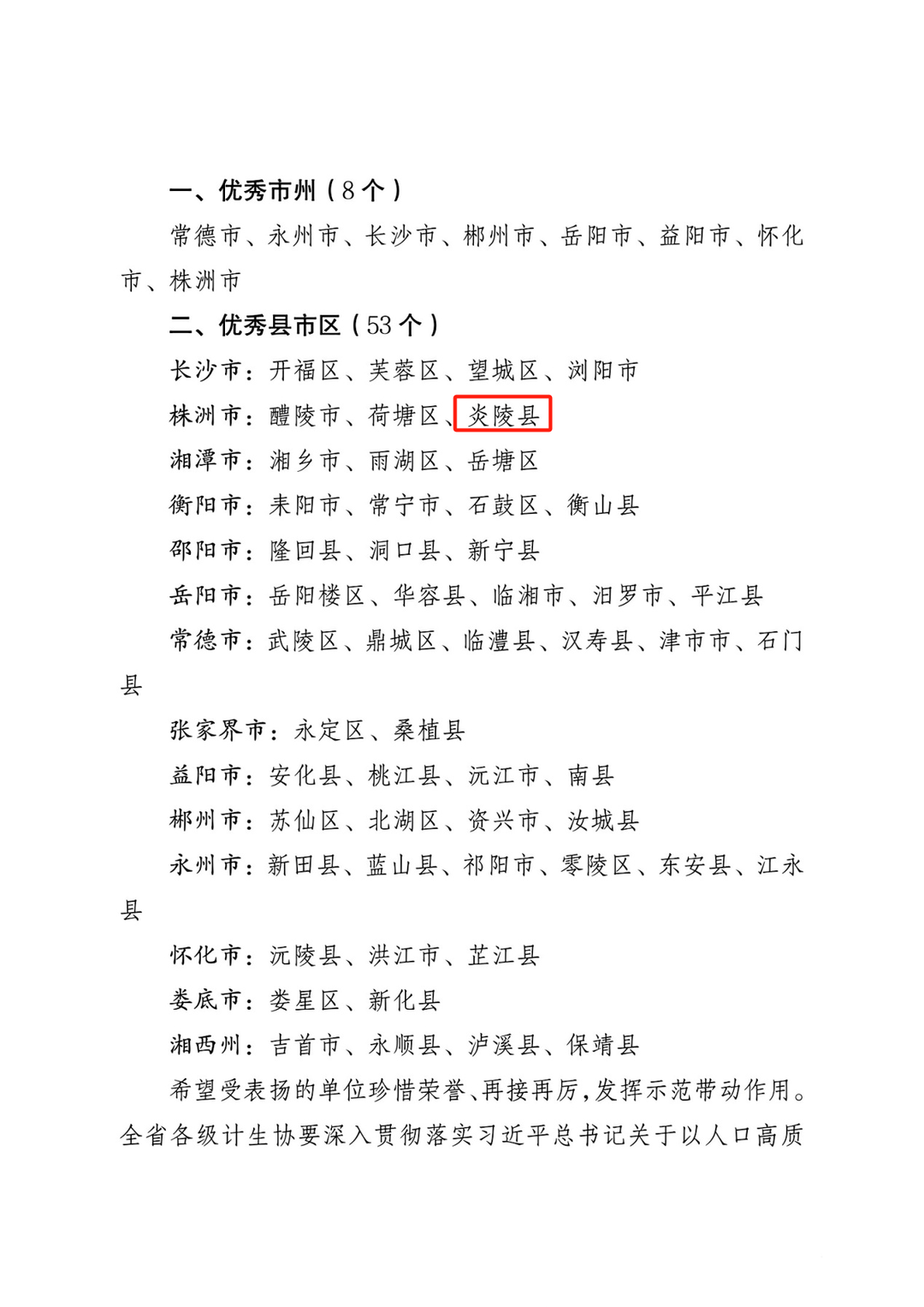 近日,炎陵县计划生育协会荣获全省计生协 2024 年度民生项目实施优秀单位,连续三年获省优秀单位殊荣。受到省计划生育协会通报表扬。
