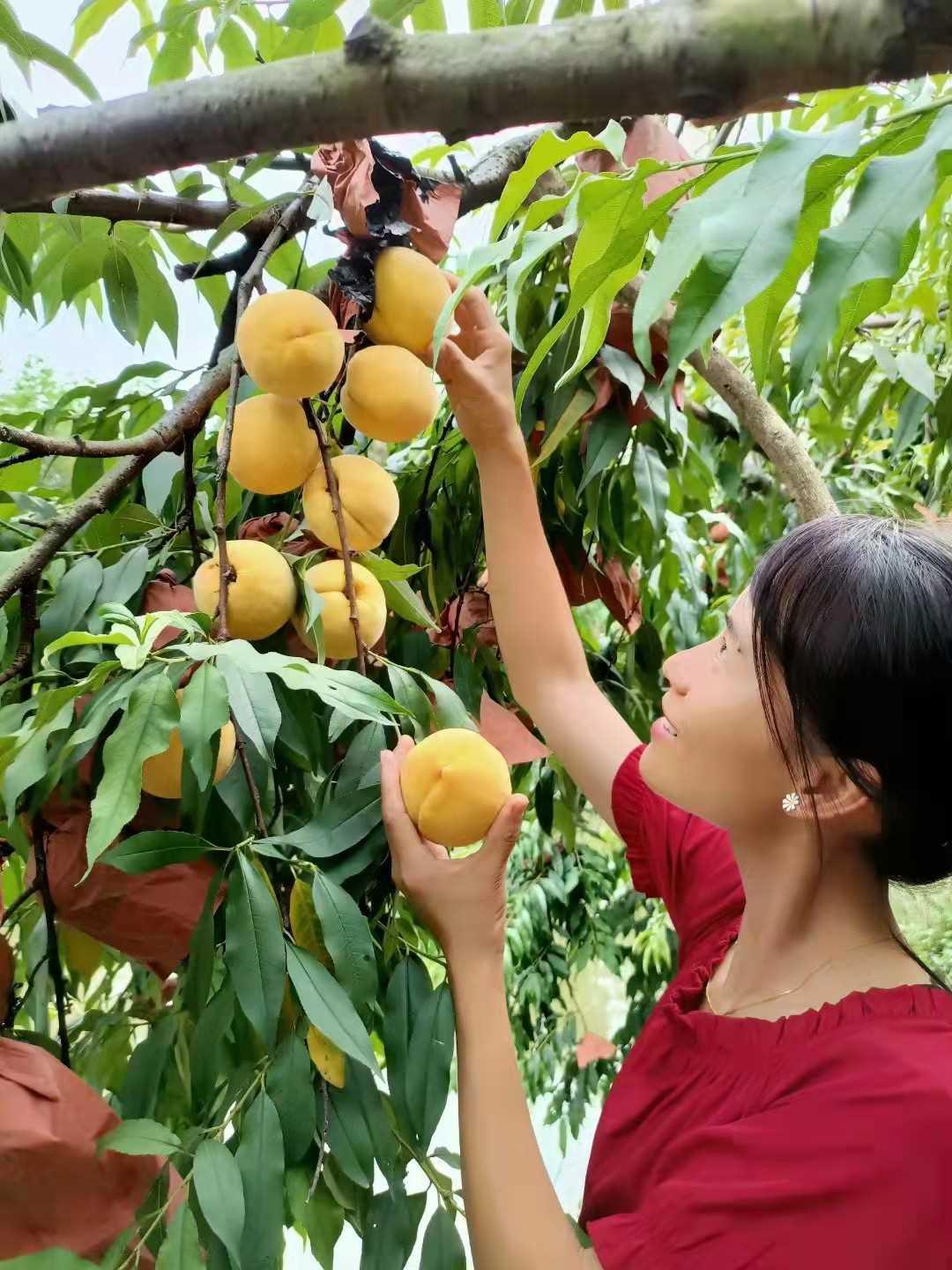八月的茶垅村,艳阳高照,精心管护的黄桃树生长茂盛,树上挂满黄澄澄的果实。吸引了不少游客前来休闲避暑、采摘黄桃。