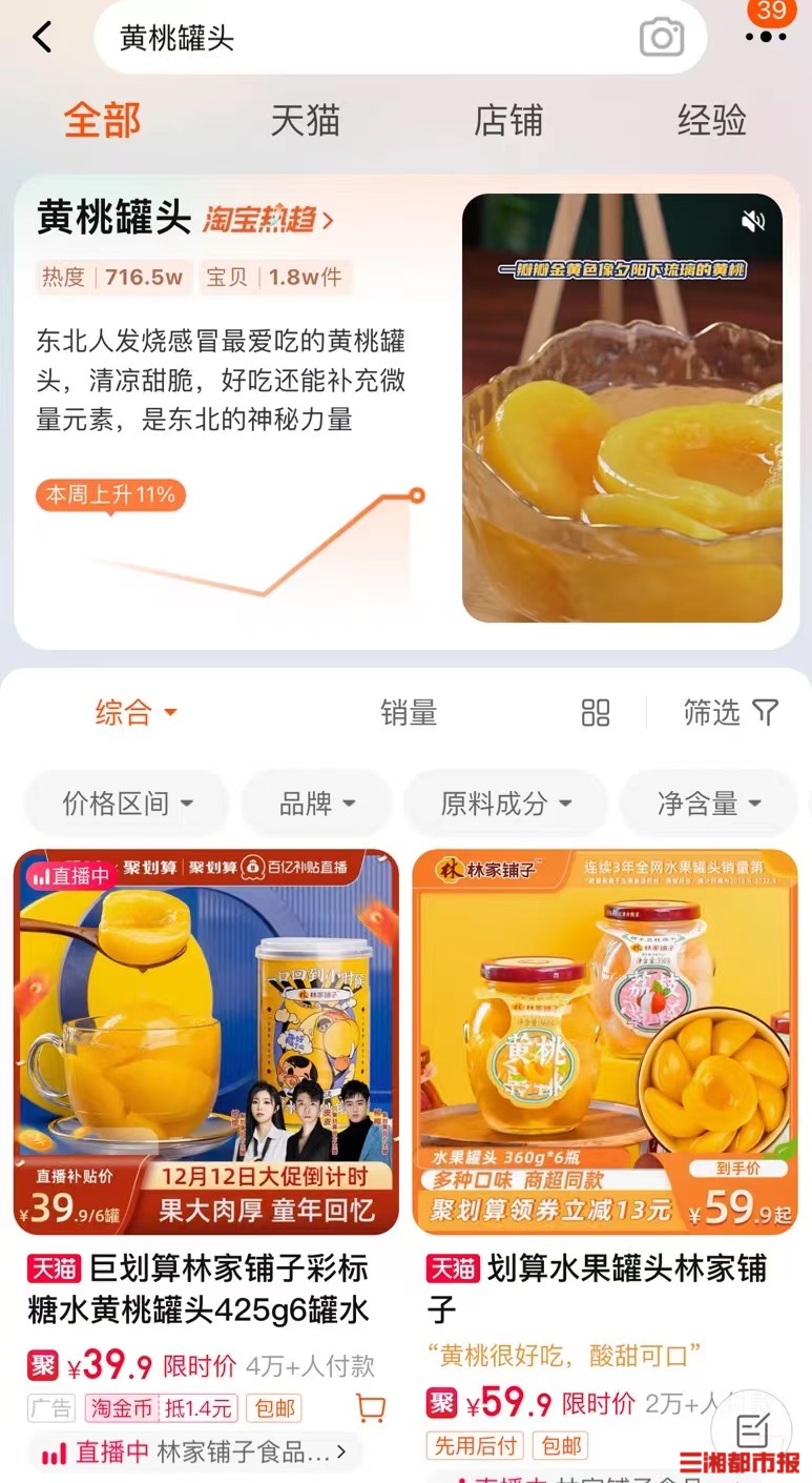 浏览次数: 发布时间:2022-12-14 16:34三湘都市报·新湖南客户端12月13日讯(文/视频 全媒体记者 杨洁规)随着全国疫情防控措施的优化调整,普通市民居家必备药单在网上盛传多日。热销的除了连花清瘟、布洛芬等药品,还有黄桃罐头。连日来,黄桃罐头热度不断,全国各地掀起购买热潮。