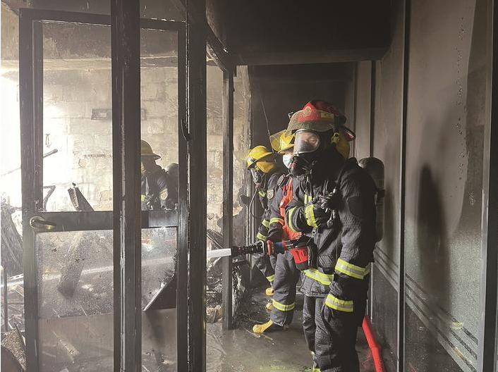消防队员赶至现场时,火势已经迅速蔓延,烈焰透过窗户向外迸射。罗芳志立即带领队员,顶着高温、冒着明火浓烟,前往火海搜救被困人员。