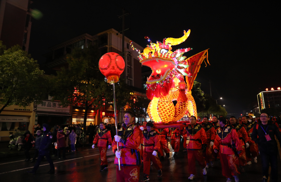 [新华网]千米“长龙”游炎陵 万人空巷闹元宵