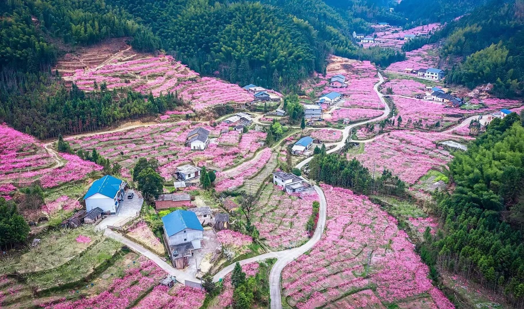炎陵乡村漫山遍野的桃花竞相绽放。 炎陵县委宣传部 供图
