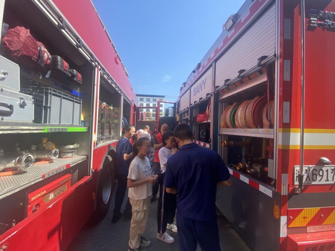 此外,消防员还带领孩子们参观了各式各样的消防车,解锁了消防车上的许多小秘密,孩子们听得津津有味,围着消防车这看看、那摸摸,充满了好奇。