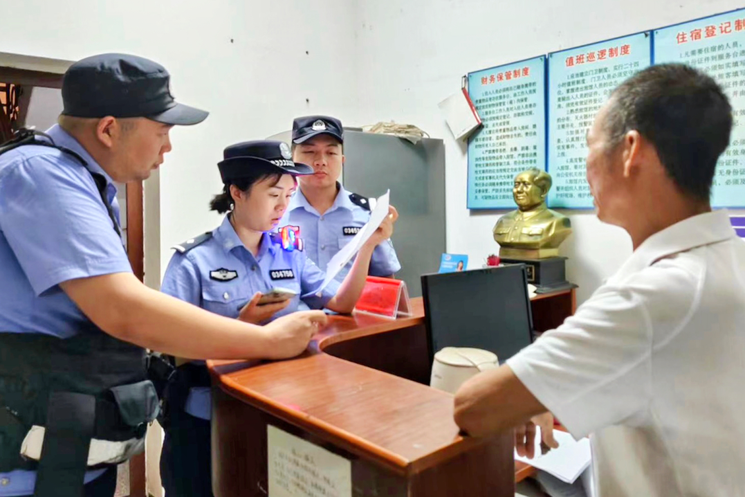 民警在旅馆开展安全隐患排查