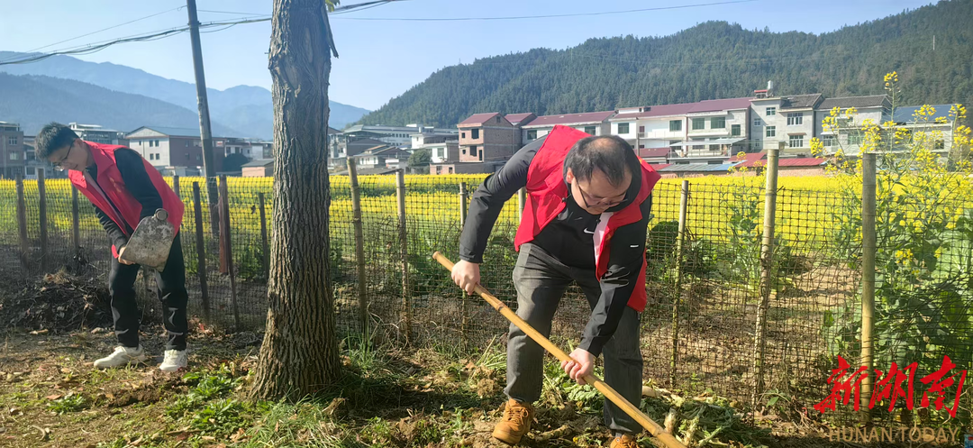 湖南日报·新湖南客户端3月26日讯(通讯员 谭恒逸)春日的晨光中,炎陵县十都镇晓东村迎来一场"美丽接力"。3月24日,由镇新时代文明实践所组织的"扮靓家园"环境整治行动在油菜花盛开的乡野间展开,志愿者们与村民携手,用锄头和花种为美丽乡村建设写下生动注脚。