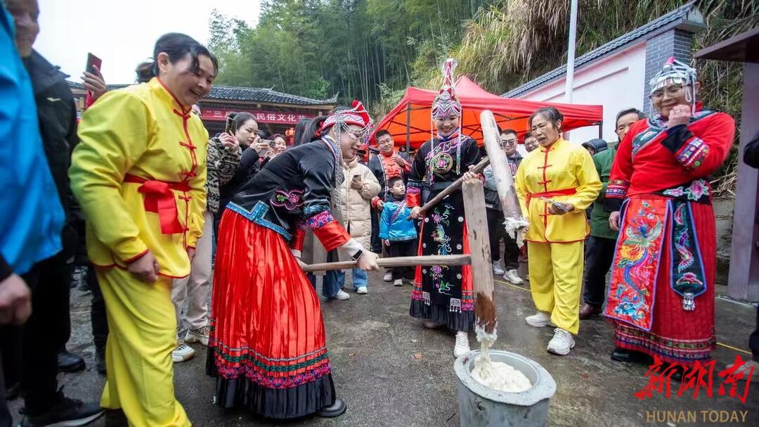 活动现场,打糍粑的木槌声此起彼伏,艾叶米粿清香四溢。畲族农耕器具展厅内,百余件畲族服饰、竹木制作的农具和生活用品展现畲族农耕文明。村委会广场上,炎陵县戏剧传承中心开场舞《吉祥》、客家山歌《山歌唱来丫哇多》等节目赢得满堂喝彩,竹竿舞环节引得观众争相上场。