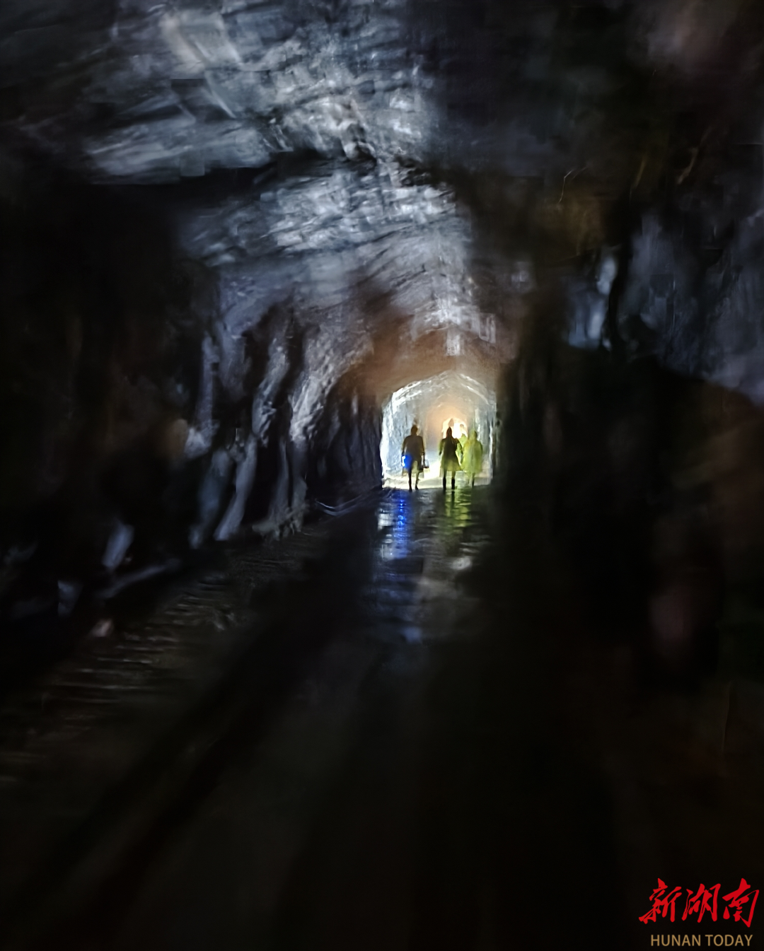 文艺家们首先徒步穿过岗背山隧道,隧道全长965米,是湘东地区新中国后耗时最长、任务最艰巨的一个水利工程,创造了人工开凿千米花岗岩隧道的奇迹。