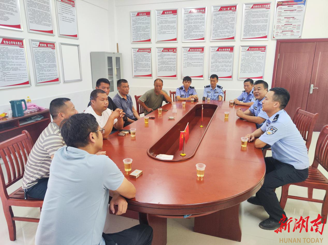 “大家都坐,坐下来商量。”水口派出所所长刘剑波一边招呼前来帮助调解的村支书和两个组长坐下,一边拉着陈某、李某坐在同一张桌子促膝而谈,很快纠纷便解决了。