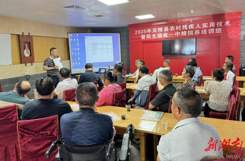 6月4日,炎陵县残联举办2025年农村残疾人实用技术暨阳光增收——中蜂饲养培训班,来自11个乡镇(场)的30名残疾人及残疾人家属参加培训。