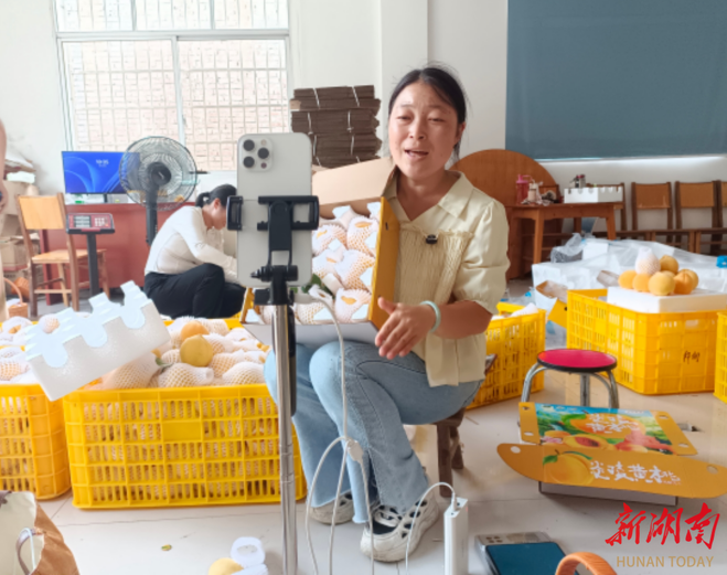 新龙村党总支聚焦短视频和直播领域,将返乡创业青年、新农人、大学生及村干部等一线力量纳入培育体系,成功挖掘并孵化出一批“直播新人”。通过精准定位市场需求,该村已打造“A炎陵黄桃新龙小店”“炎陵黄桃在果园”“远嫁的燕子”等多个特色IP账号,构建起覆盖多平台的农产品推广矩阵,让炎陵黄桃、奈李等特色农产品通过云端走向全国市场。