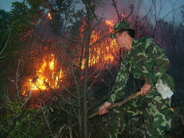 2009年3月,炎陵县鹿原镇一偏僻山林发生火灾,武警炎陵中队接到任务,第一时间赶到现场进行处置。通讯员供图