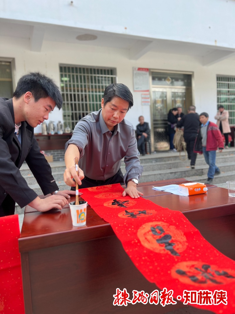 株洲日报讯(全媒体记者/徐滔 朱朝阳)红纸翻飞,墨香四溢,欢声笑语回荡乡村。2月4日上午,炎陵县船形乡沿楠村党群服务中心前坪成了欢乐的海洋,以“和美沿楠迎新春·聚力振兴启新程”为主题的春节联欢文体活动火热上演,这场充满乡土年味的活动吸引了200多名村民扶老携幼前来参加。