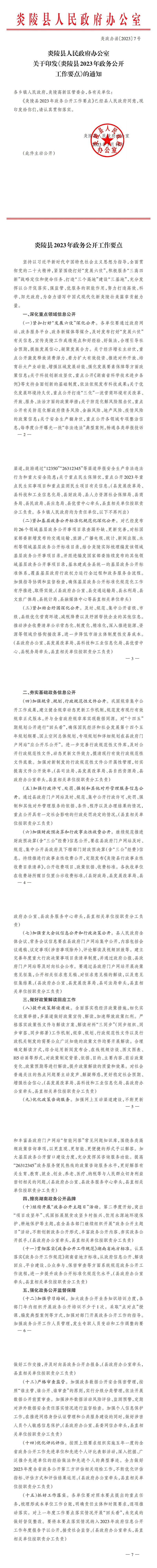 炎陵县人民政府办公室关于印发《炎陵县2023年政务公开工作要点》的通知
