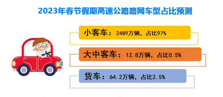 根据湖南省气象台预报,春节假期期间气温较常年同期偏低,降水较常年同期偏少,整体气象条件有利于公众出行。随着疫情防控政策调整,全省高速公路路网流量高于去年同期水平,路网车型以探亲访友的小型客车为主,潮汐现象明显。