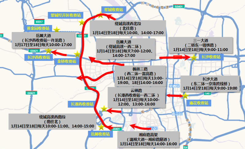 节前,长沙交警预测1月14日至18日为出城高峰,主要集中在河西出城通道的每日10时至11时、14时至17时。