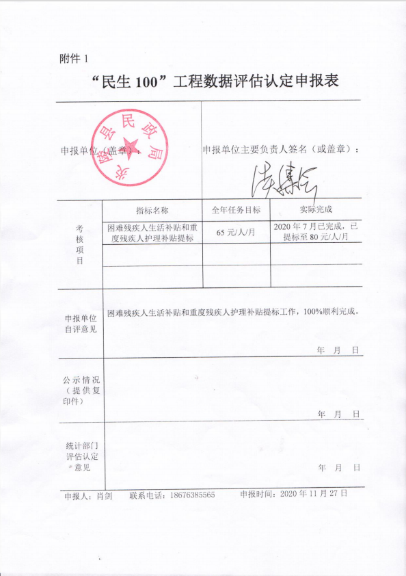 公示时间:2020年11月23日一30日。如有异议,可通过来信、来电、来访形式向县"民生100"考核办反映。