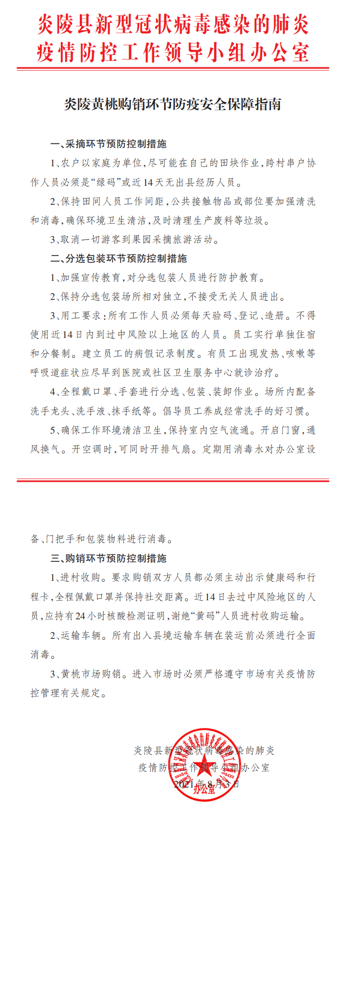 炎陵黄桃购销环节防疫安全保障指南