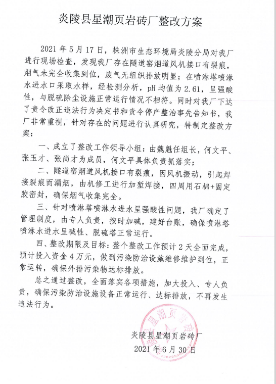 整改方案下载:炎陵县星潮页岩砖厂整改方案