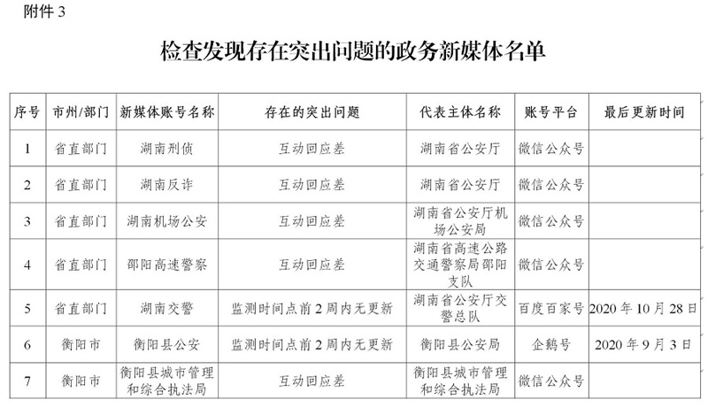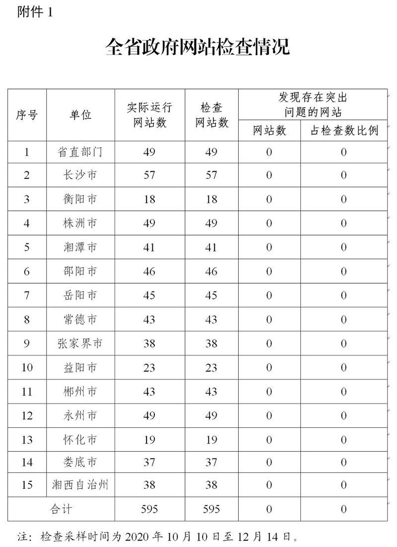 湖南省政务管理服务局关于2020年第四季度全省政府网站与政务新媒体检查情况的通报