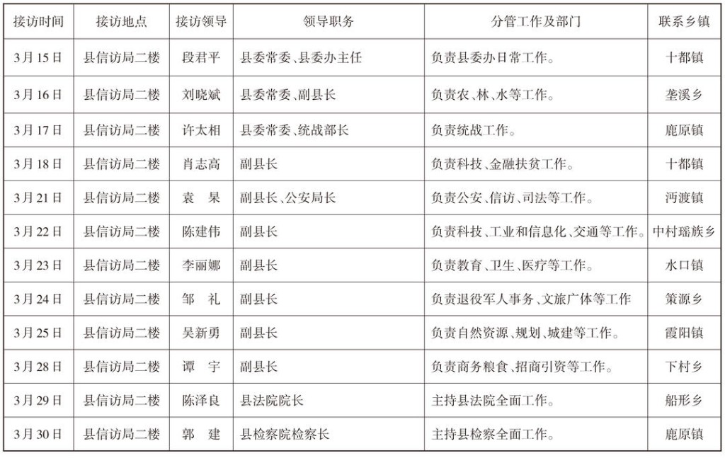 2.根据群众信访事项属地属事情况,安排由相应的分管县级领导接访,并通知相关部门、乡镇负责人参与接访。
