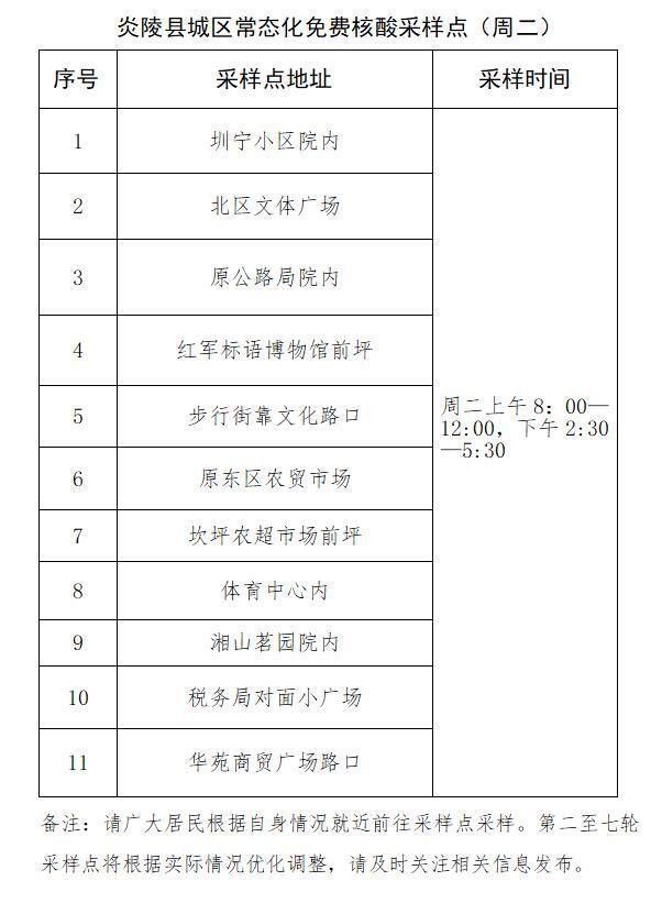 免费区域核酸检测采样点详细时间、地点安排见附件。