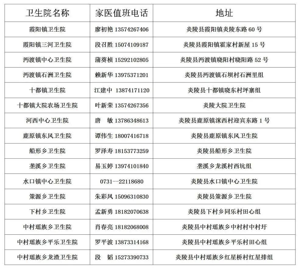 15 | 炎陵县船形乡卫生院 | 船形乡新生村船形乡卫生院 | 18153773259 | 发热诊室 |