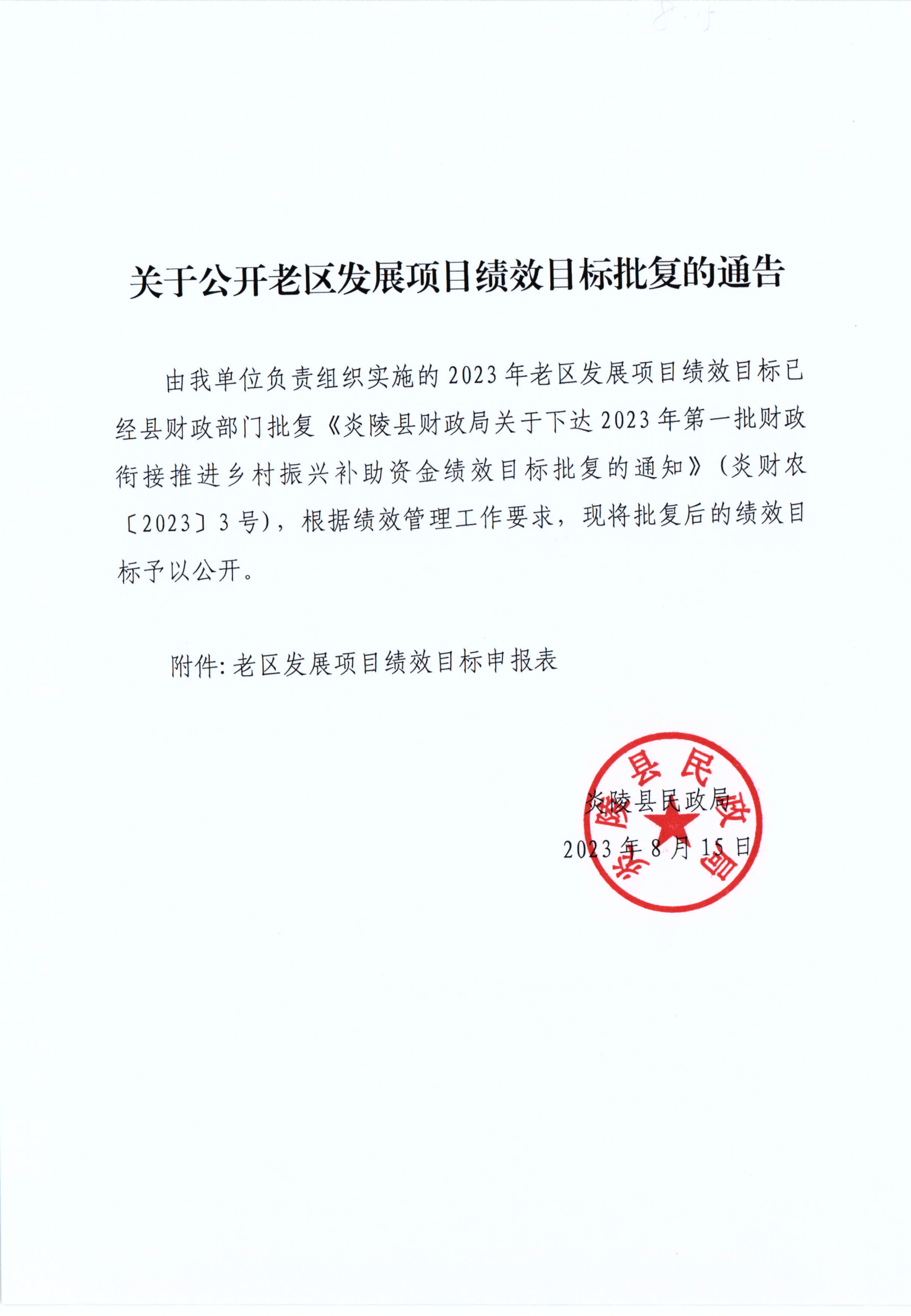 关于公开老区发展项目绩效目标批复的通告
