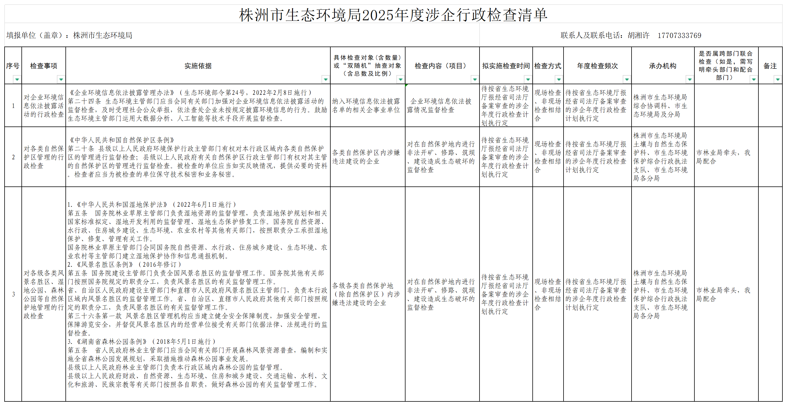 附件:株洲市生态环境局涉企检查事项清单