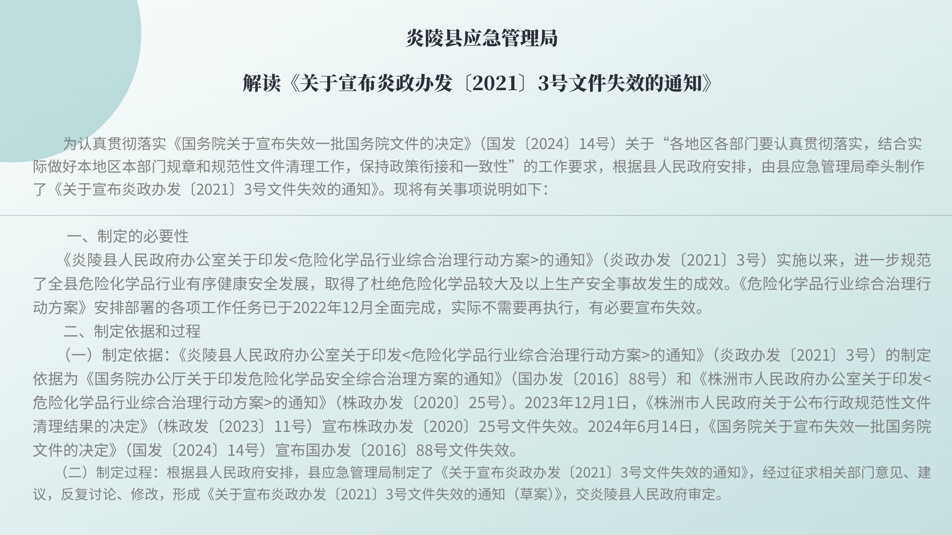 图解:炎陵县应急管理局解读《关于宣布炎政办发〔2021〕3号文件失效的通知》
