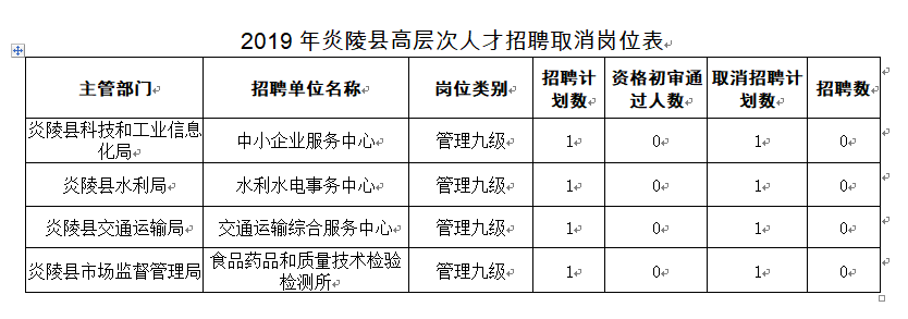 关于2019年炎陵县公开招聘高层次人才取消部分岗位招聘计划的公告